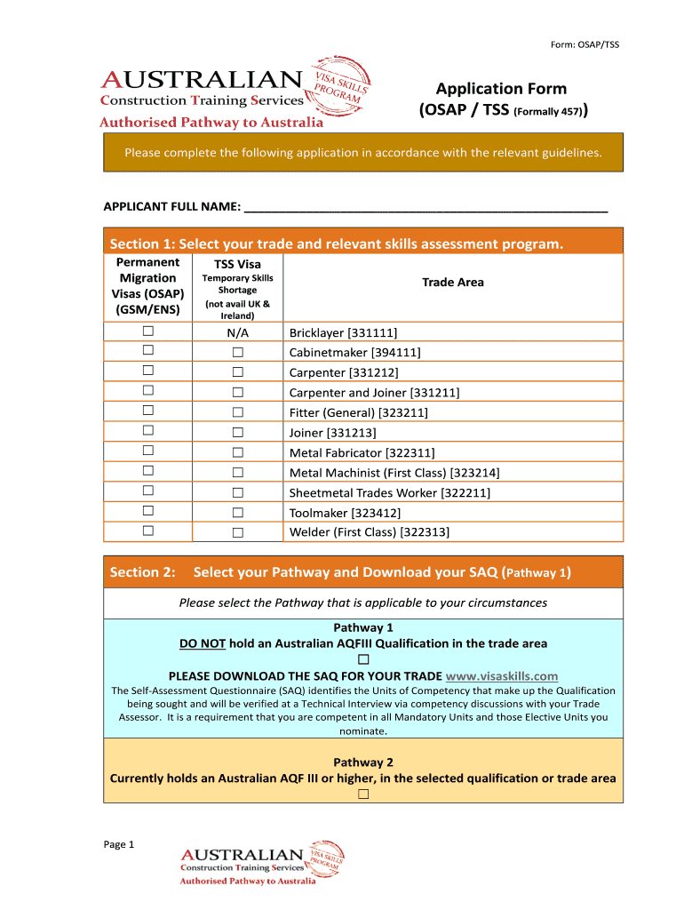 Form: OSAP/Misapplication Form (OSAP / TSS (Formally 457)) Please complete the following application in accordance with the relevant guidelines. APPLICANT FULL NAME: Section 1: Select your trade and
