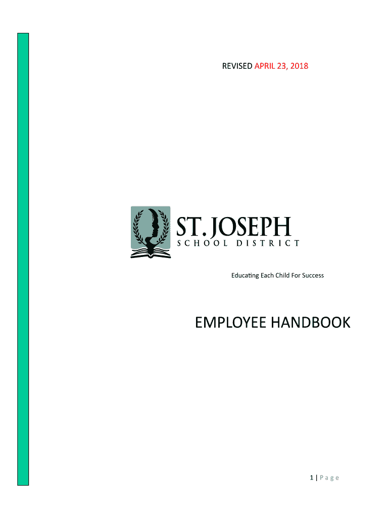 REVISEDAPRIL23,2018 Educ ngEachChildForSuccessEMPLOYEEHANDBOOK1 P a g e TABLE OF CONTENTS Section1:HandbookIntroduction HandbookIntroduction&Purpose WelcomeStatement About St. JosephSchoolDistrict