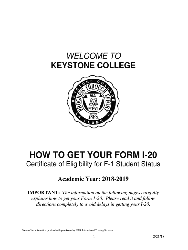 KEYSTONE COLLEGE TO GET YOUR FORM I20