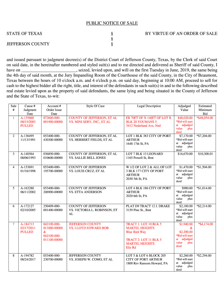 Get the free Online PUBLIC NOTICE OF SALE Fax Email Print - PDFfiller