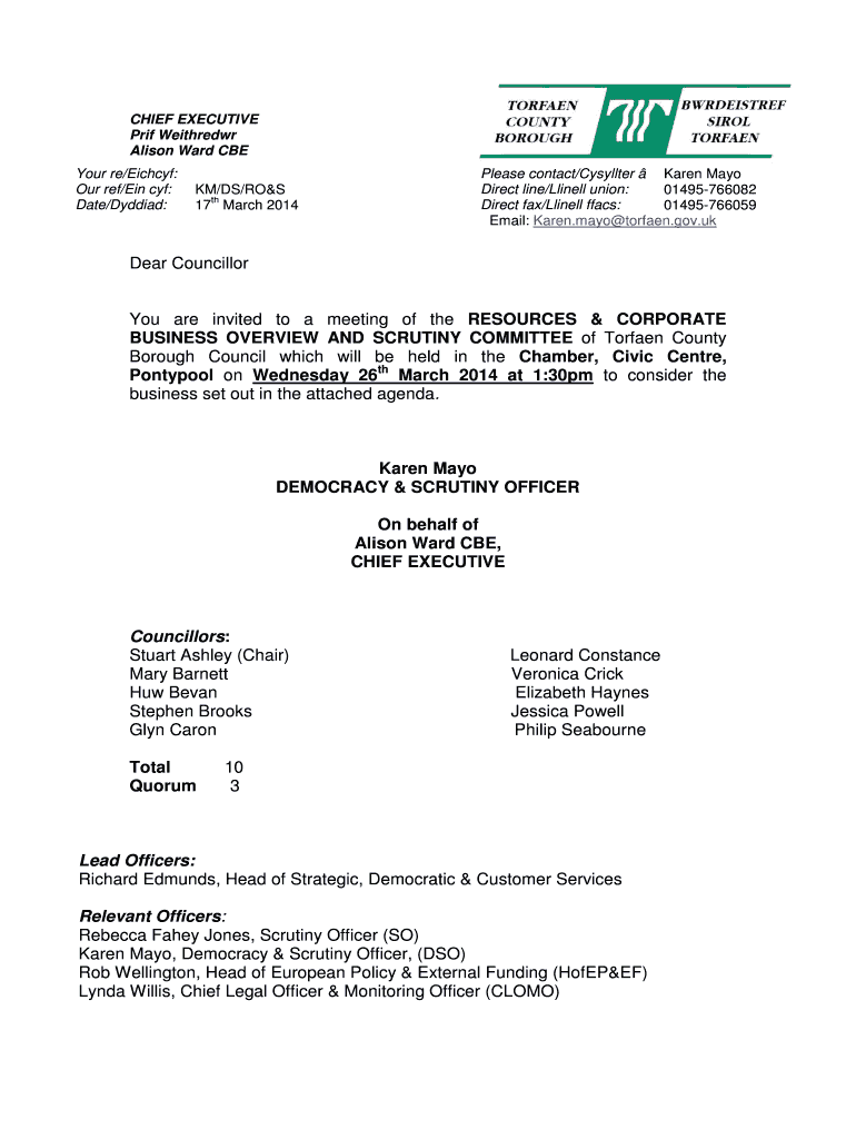 Get the free RESOURCES & CORPORATE BUSINESS OVERVIEW AND - moderngov torfaen gov
