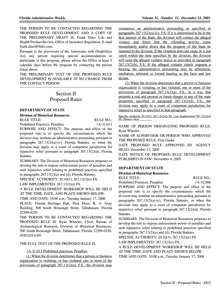 PROPOSED RULE DEVELOPMENT AND A COPY OF