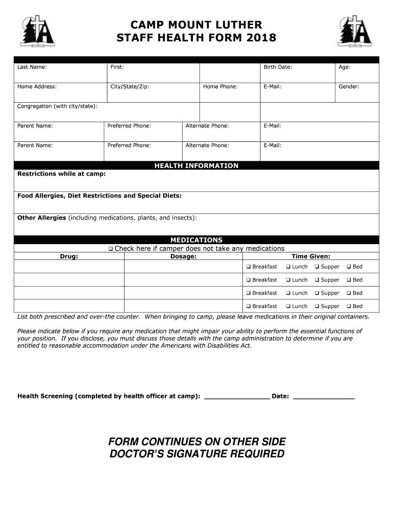 Get the free STAFF HEALTH FORM 2018