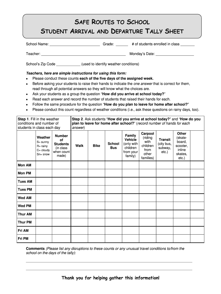 This tally sheet provides numerous advantages for teachers and educational institutions. It plays a crucial role in tracking transportation patterns, which assists in both safety management and logistical planning.