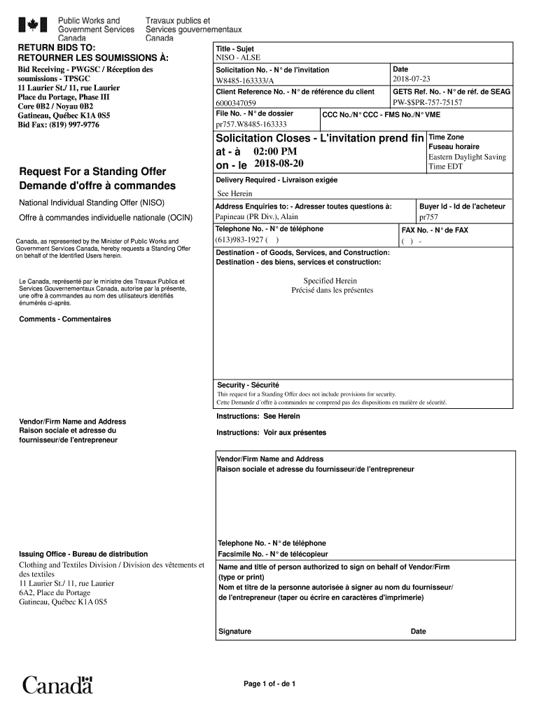 11RETURN BIDS TO: RETURNER LES COMMISSIONS :Title Outbid Receiving PW GSC / Reception DES sou missions TP SGC 11 Laurie St./ 11, rue Laurie Place du Portage, Phase III Core 0B2 / Royal 0B2 Gatineau,