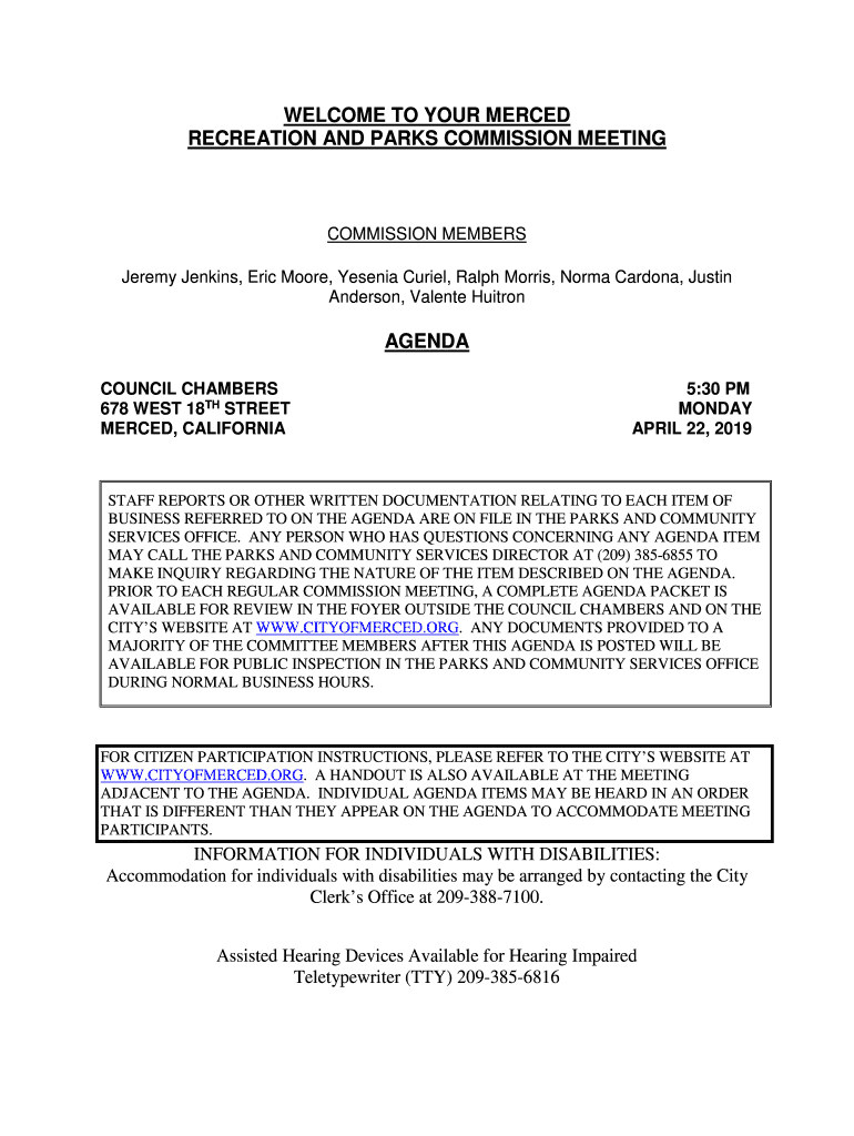 RECREATION AND PARKS COMMISSION MEETINGCOMMISSION MEMBERS