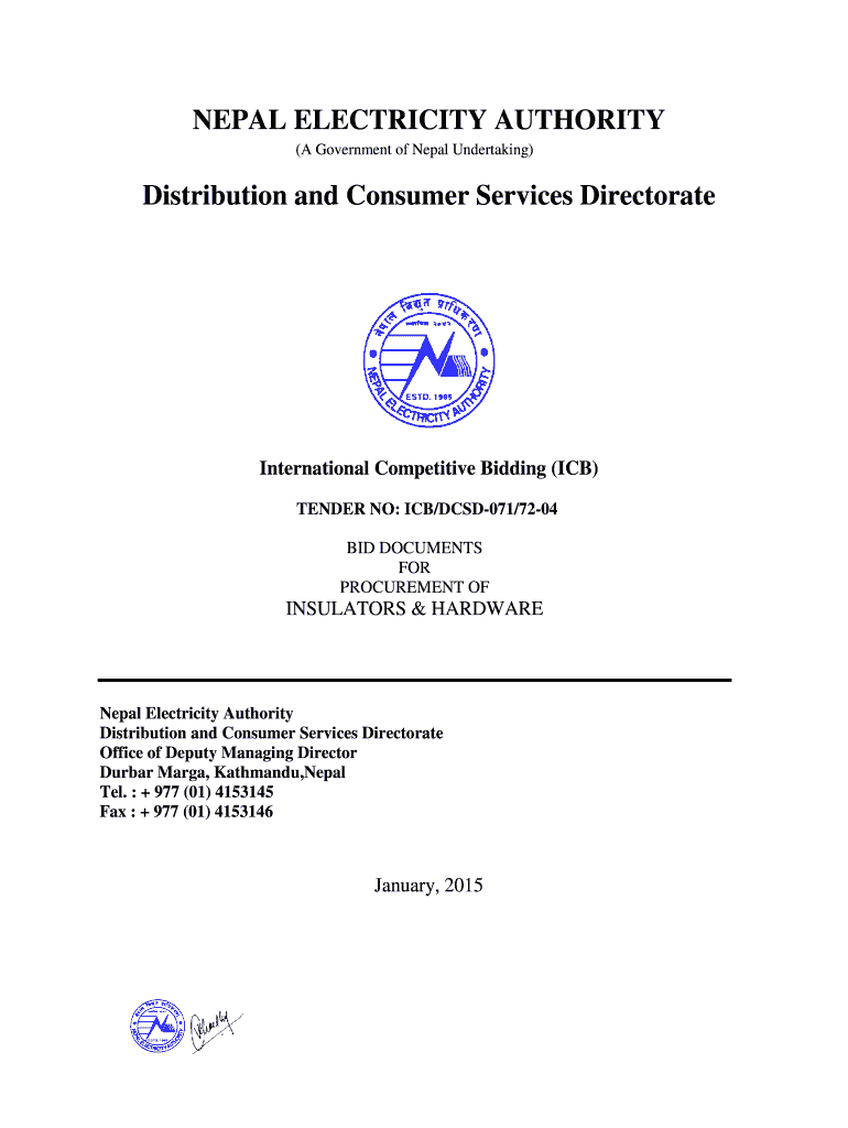NEPAL ELECTRICITY AUTHORITY (A Government of Nepal Undertaking)Distribution and Consumer Services DirectorateInternational Competitive Bidding (ICB) TENDER NO: ICB/DCSD071/7204 BID DOCUMENTS FOR PROCUREMENT