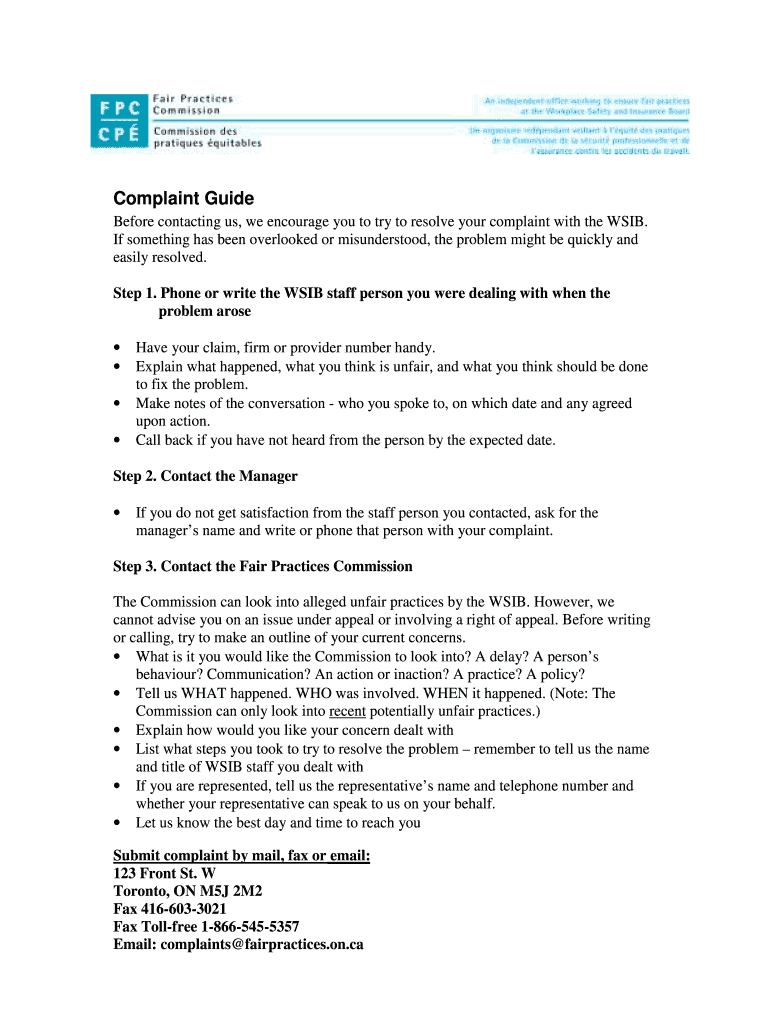 Complaint Guide Before contacting us, we encourage you to try to resolve your complaint with the ESIB. If something has been overlooked or misunderstood, the problem might be quickly and easily resolved.