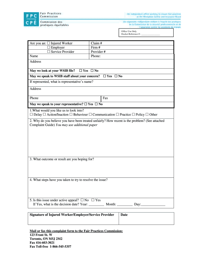 Get the free Injured Worker Claim # Employer Firm # Service Provider ...