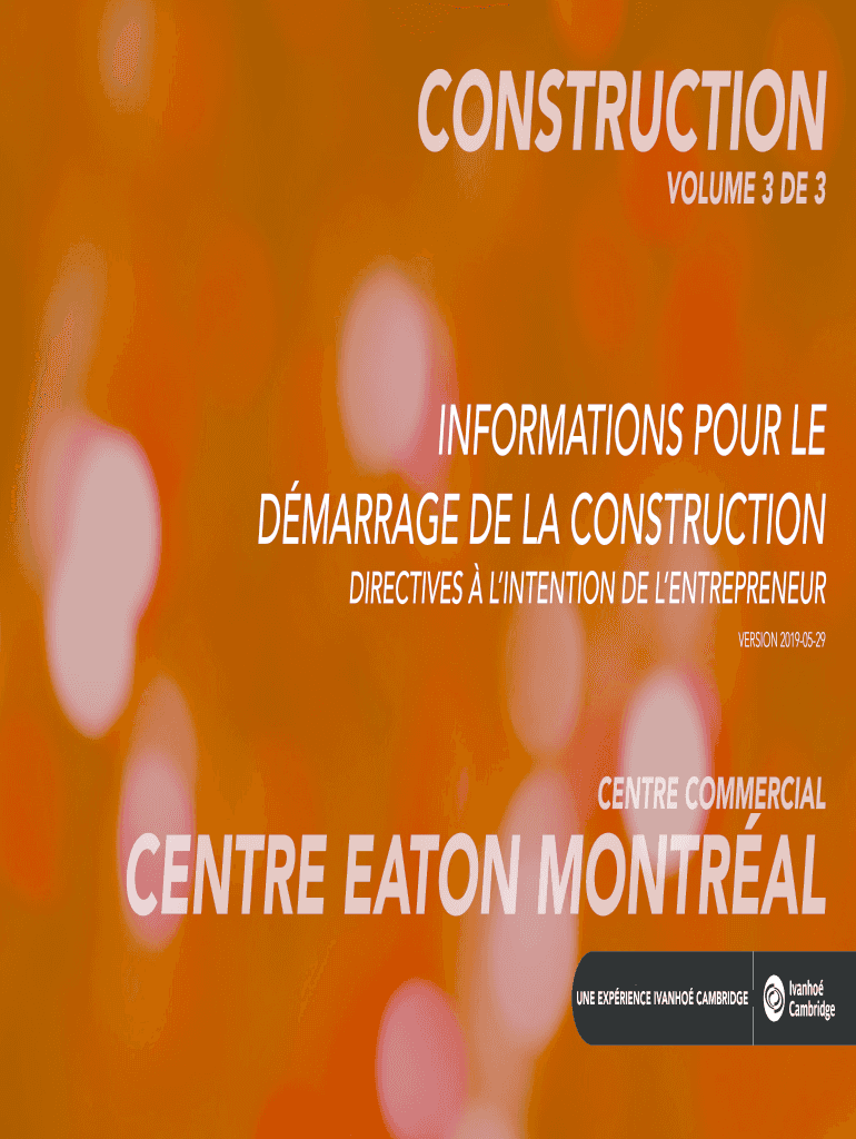 CONSTRUCTION VOLUME 3 DE 3INFORMATIONS POUR LE MARRIAGE DE LA CONSTRUCTION DIRECTIVES INTENTION DEL ENTREPRENEUR VERSION 20190529CENTRE COMMERCIALCENTRE EATON MONTREAL ONE EXPERIENCE IVANHOE CAMBRIDGEINTRODUCTION
