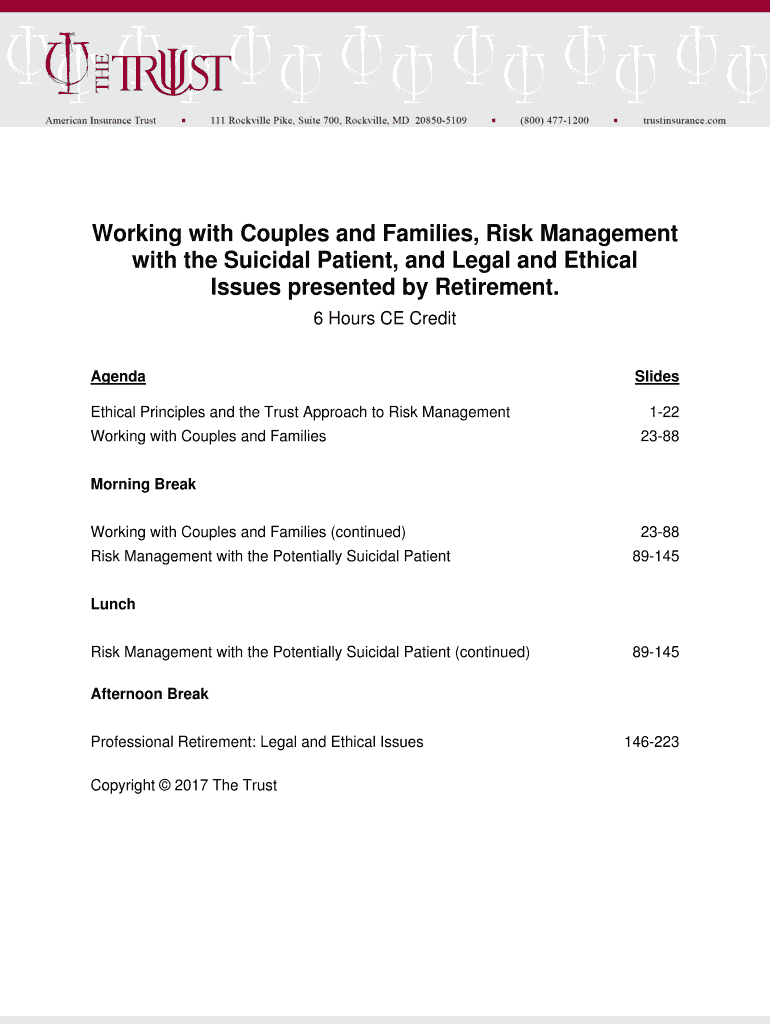 Get the free Working with Couples and Families, Risk Management ... - The Trust