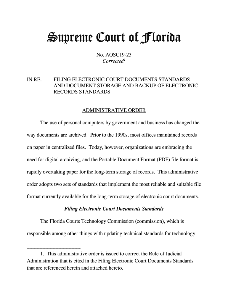 Corrected1IN RE:FILING ELECTRONIC COURT DOCUMENTS STANDARDS