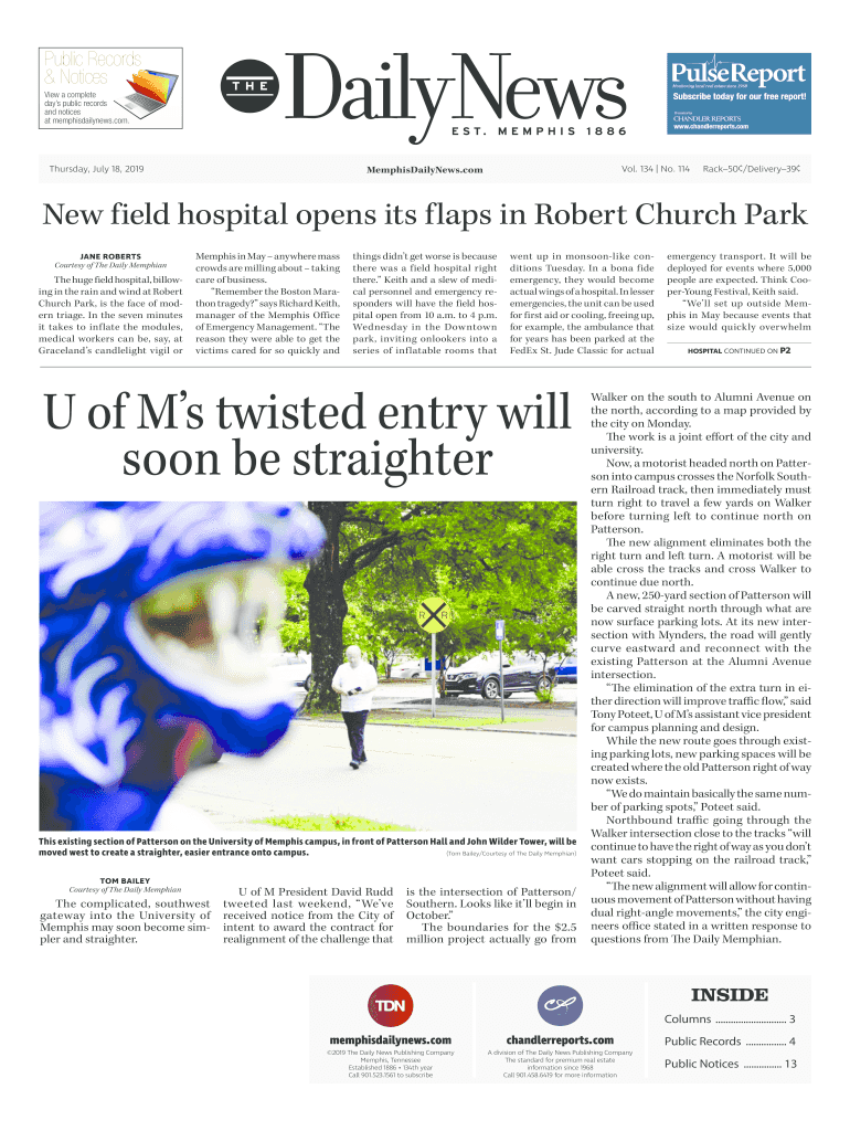 Public Records & Notices View a complete days public records and notices at memphisdailynews.com.www.chandlerreports.comThursday, July 18, 2019Vol. 134 No. 114MemphisDailyNews.comRack50/Delivery39New