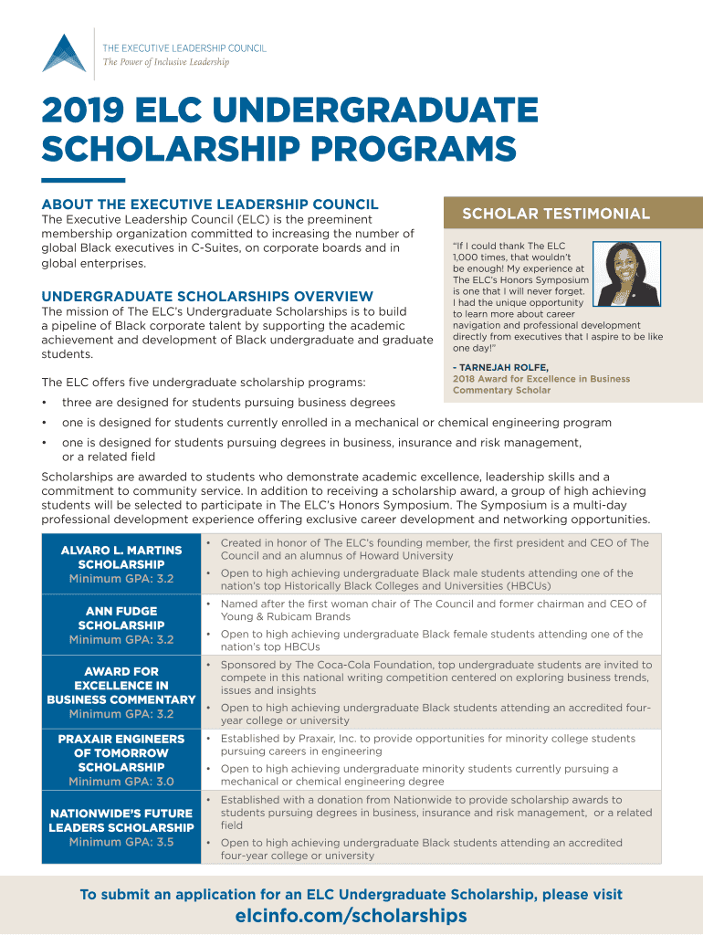 Get the free The Executive Leadership Council Offers a Half Million Dollars ...