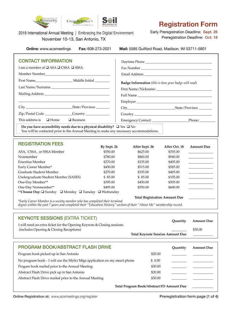 Registration Form 2019 International Annual Meeting Embracing the Digital Environment November 1013, San Antonio, TX Online: www.acsmeetingsFax: 6082732021Mail: 5585 Guilford Road, Madison, WI 537115801Contact