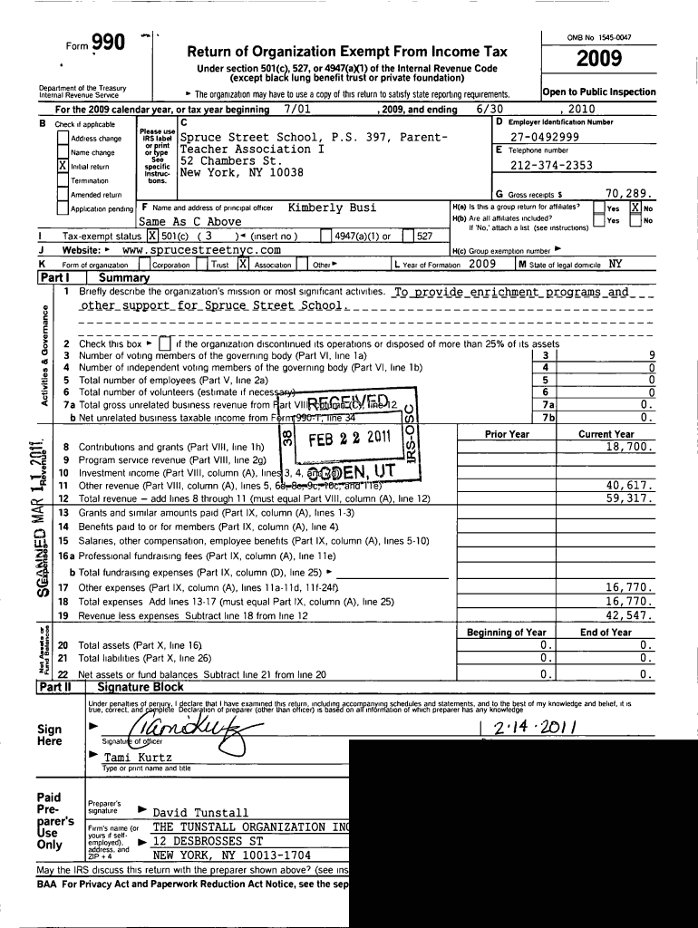 Form990 “OMB No 1545.0047Return of Organization Exempt From Income Tax2009Under section 501 (c), 527, or 4947(AXL) of the Internal Revenue Code (except black lung benefit trust or private foundation)