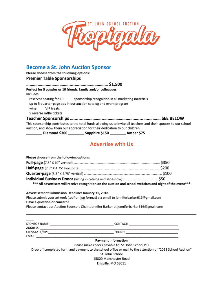 Get the free Become a St. John Auction Sponsor