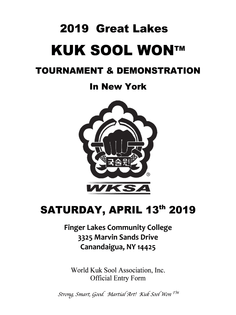 2019 Great Lakes SOON Won't TOURNAMENT & DEMONSTRATION In New YorkSATURDAY, APRIL 13th 2019 Finger Lakes Community College 3325 Marvin Sands Drive Canandaigua, NY 14425 World UK Soon Association,