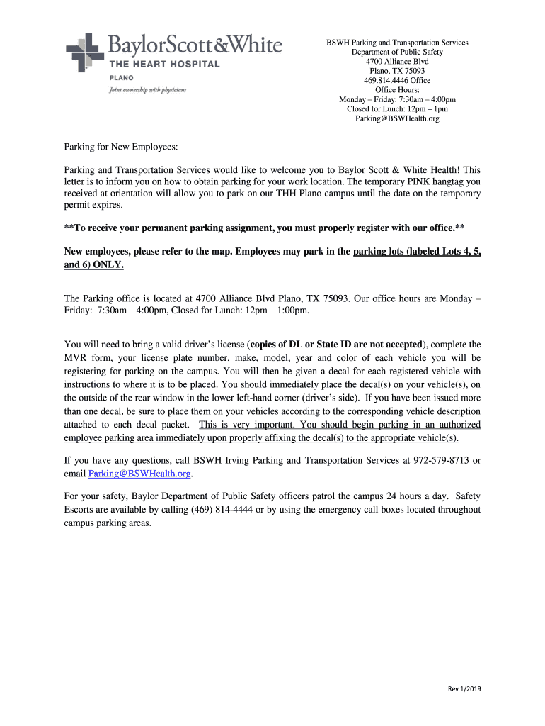 Get the free BSWH Parking and Transportation Services Department of ...