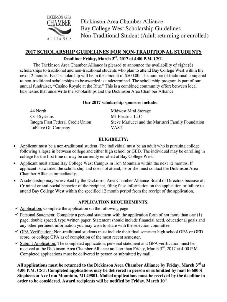2017 SCHOLARSHIP GUIDELINES FOR NONTRADITIONAL STUDENTS