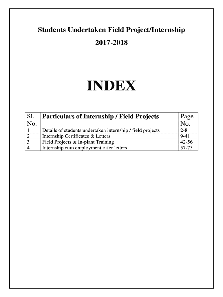 Students Undertaken Field Project/Internship 20172018INDEX SL. Particulars of Internship / Field Projects No. Page No.1 2 3 428 941 4256 5775Details of students undertaken internship / field projects