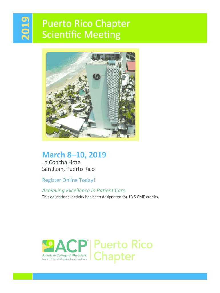 2019Puerto Rico Chapter Scientific Meeting March 810, 2019 La Concha Hotel San Juan, Puerto RicoRegister Online Today! Achieving Excellence in Patient Care This educational activity has been designated