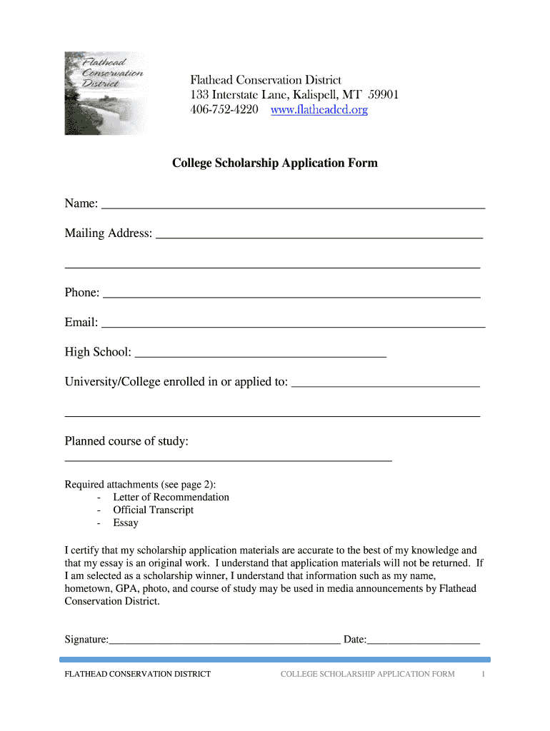 Get the free College Scholarship Application Form - flatheadcd.org