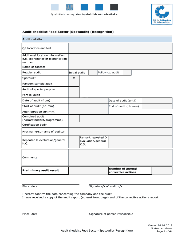 Get the free Audit checklist Feed Sector (Spotaudit) (Recognition)