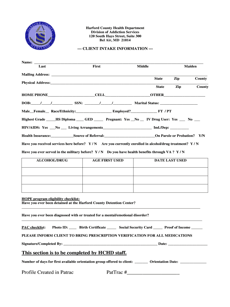 Get the free Harford County Client Intake Form