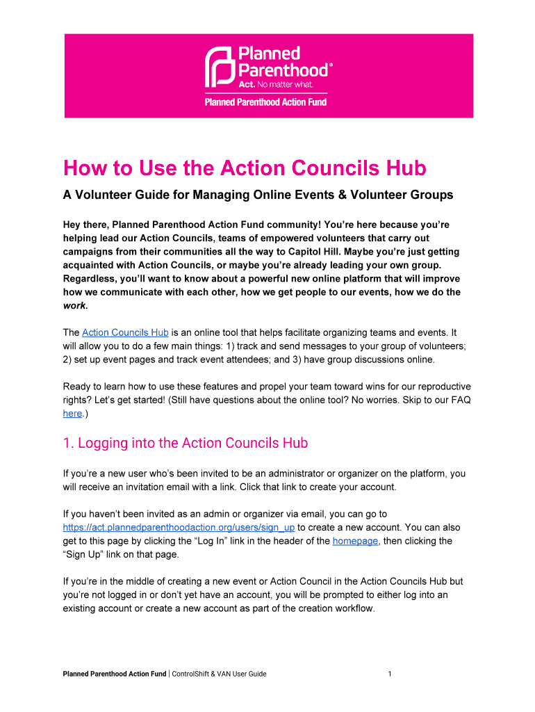 Get the free How to Use the Action Councils Hub - Planned Parenthood Action Fund