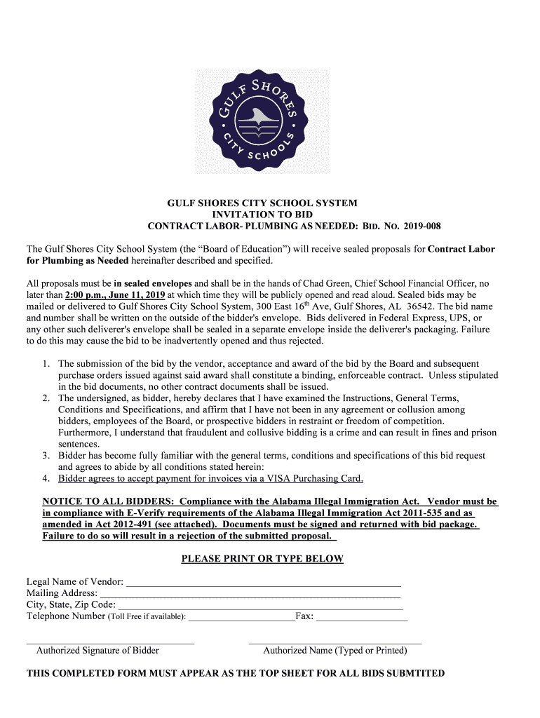 Get the free RFP for Plumbing labor, Gulf Shores City Schools, 2019-0008