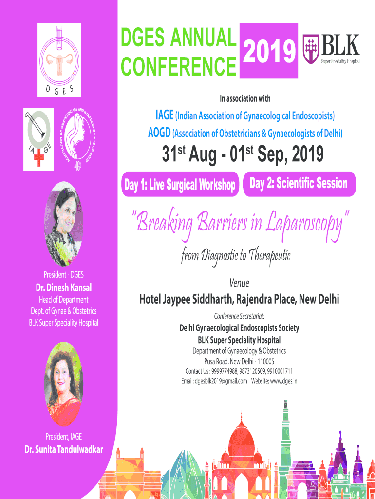 DOES ANNUAL CONFERENCE2019In association withing (Indian Association of Gynecological Endoscopies) AGD (Association of Obstetricians & Gynecologists of Delhi)31st Aug 01st Sep, 2019Day 1: Live Surgical