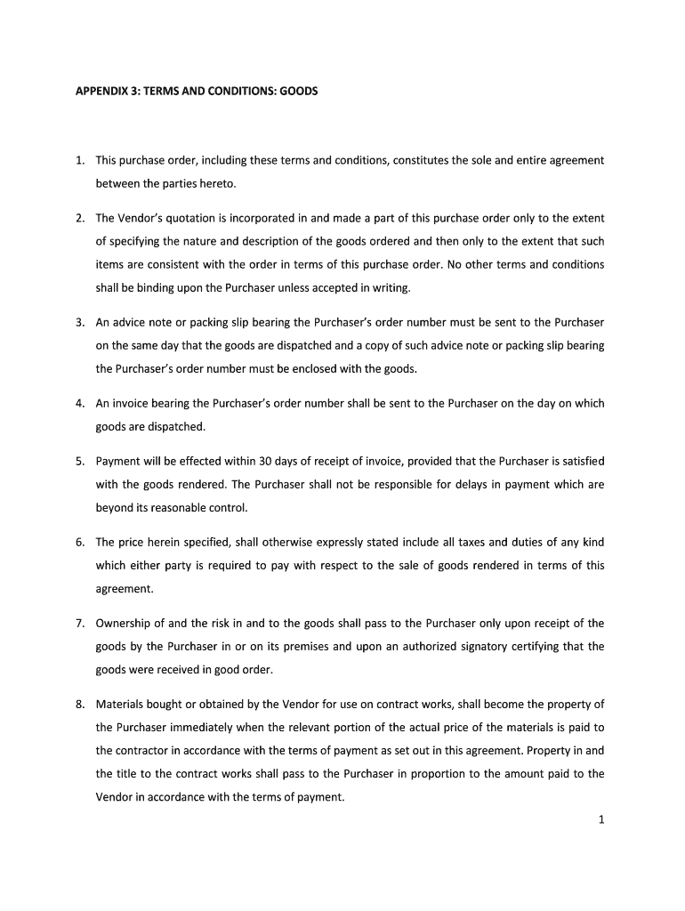 APPENDIX 3: TERMS AND CONDITIONS: GOODS1. This purchase order, including these terms and conditions, constitutes the sole and entire agreement