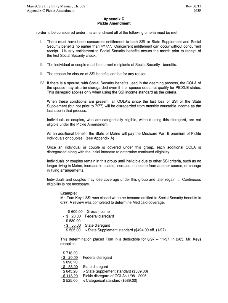 Get the free MaineCare Eligibility Manual, Ch. 332 Rev 08/13 Appendix C Pickle ...