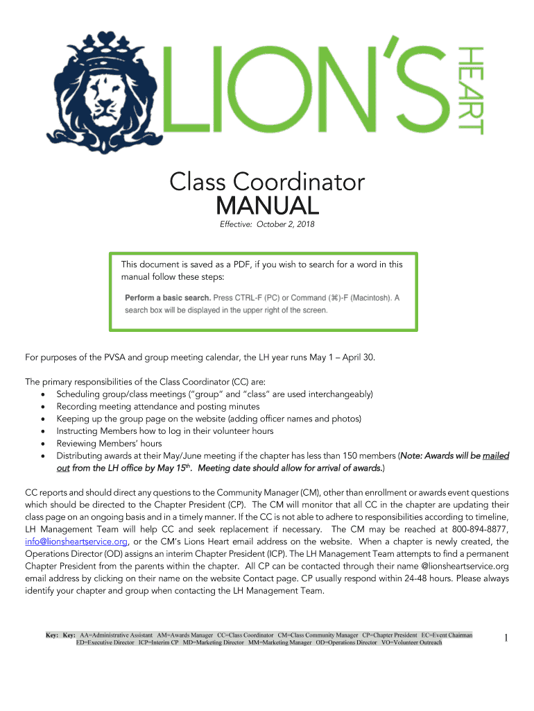 Class Coordinator MANUAL Effective: October 2, 2018This document is saved as a PDF, if you wish to search for a word in this manual follow these steps:For purposes of the PSA and group meeting calendar,