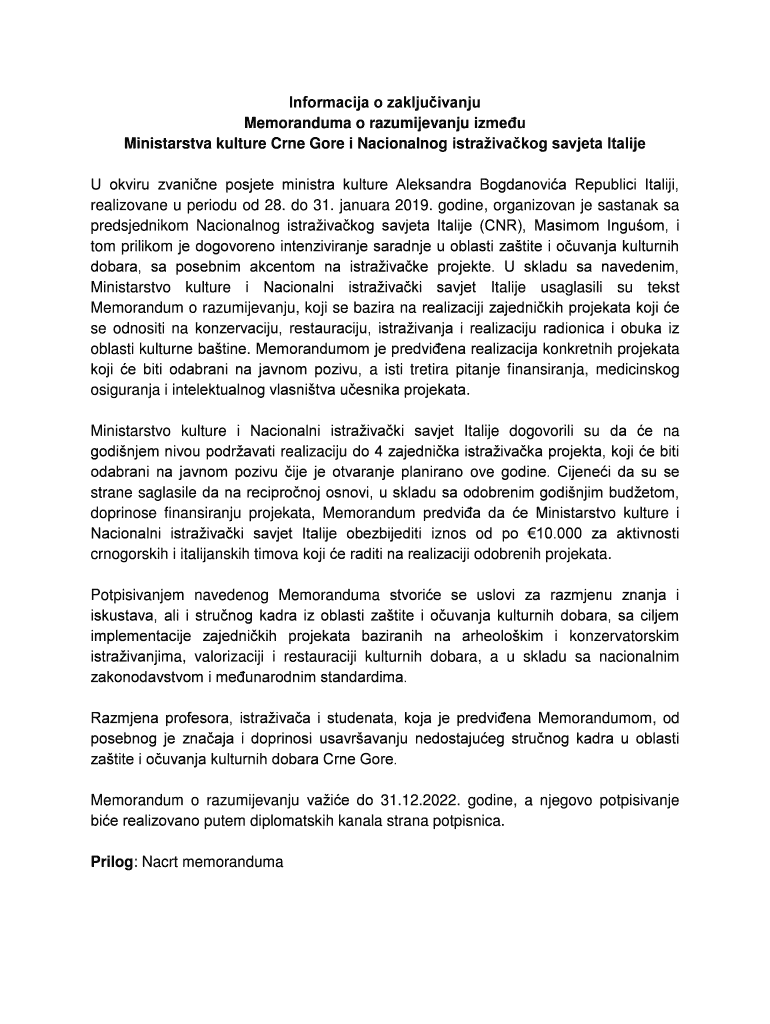Informacija o zakljuivanju memoranduma helps establish clear expectations and responsibilities between the involved parties and serves as a reference for future actions and collaborations.