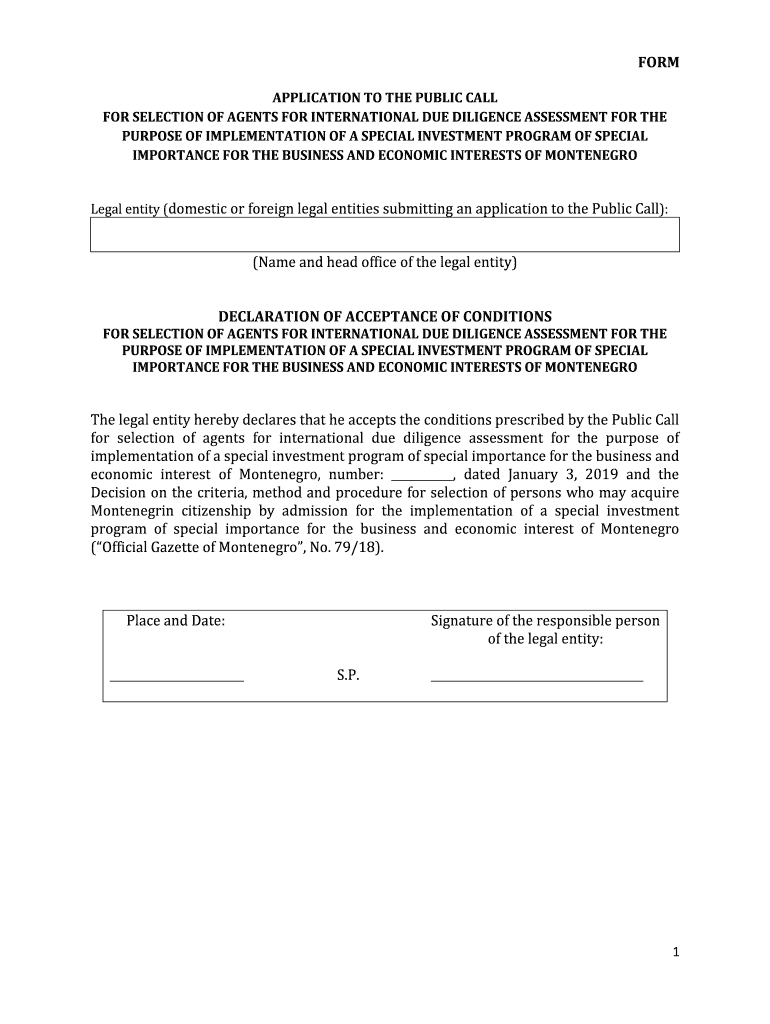 PURPOSE OF IMPLEMENTATION OF A SPECIAL INVESTMENT PROGRAM OF SPECIAL