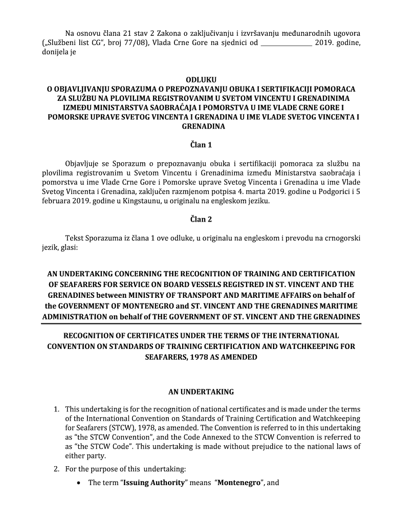 Na snow Lana 21 STAV 2 Dakota o zakljuivanju i izvravanju meunarodnih govern (Student list CG, Bros 77/08), Vlad Cone Gore Na scenic OD 2019. Iodine, Daniela JE DUKE O OBJAVLJIVANJU SPORAZUMA O PREPOZNAVANJU
