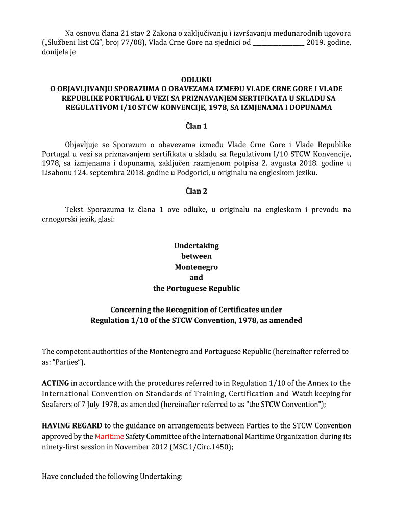 Na snow Lana 21 STAV 2 Dakota o zakljuivanju i izvravanju meunarodnih govern (Student list CG, Bros 77/08), Vlad Cone Gore Na scenic OD 2019. Iodine, Daniela JE DUKE O OBJAVLJIVANJU SPORAZUMA O OBAVEZAMA