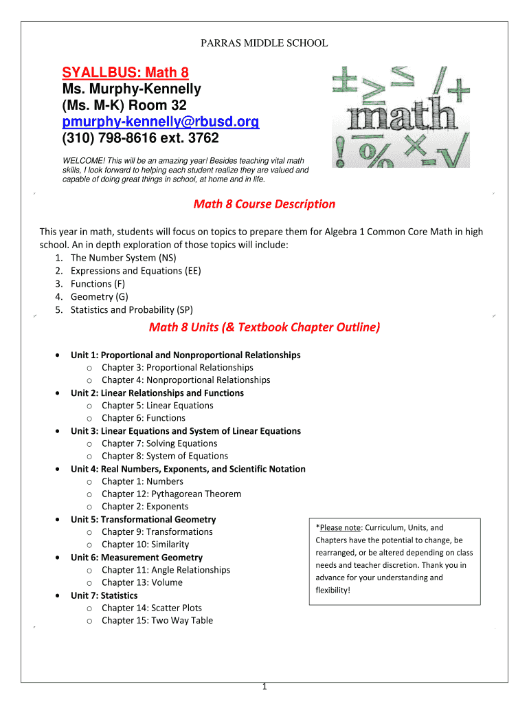 Get the free SYALLBUS: Math 8 Ms. Murphy-Kennelly (Ms. M-K) Room 32 ...