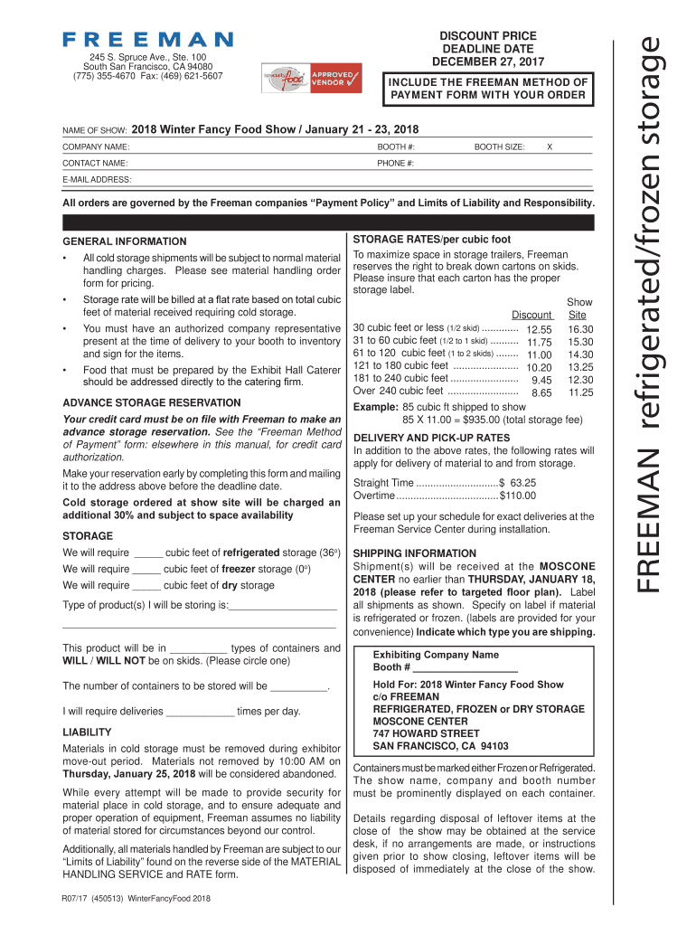 245 S. Spruce Ave., Ste. 100 South San Francisco, CA 94080 (775) 3554670 Fax: (469) 6215607NAME OF SHOW:INCLUDE THE FREEMAN METHOD OF PAYMENT FORM WITH YOUR ORDER:WHO)DCF)RRG6KRZDQXDUCOMPANY NAME:BOOTH