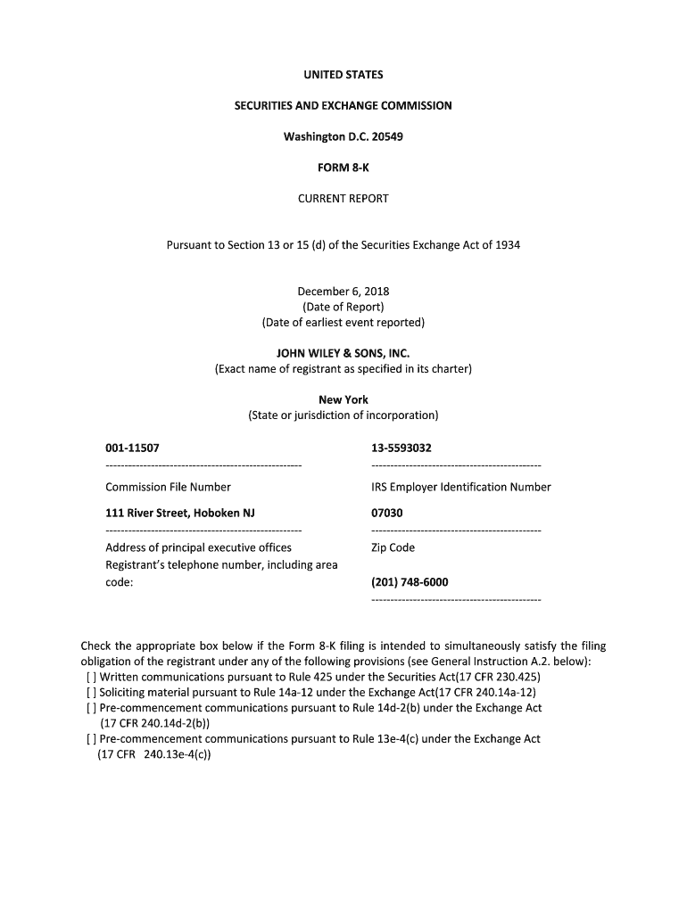 INTERSTATES SECURITIESANDEXCHANGECOMMISSION Washington. C.20549 FORM8K CURRENTREPORT PursuanttoSection13or15(d)oftheSecuritiesExchangeActof1934 December6,2018 (DateofReport) (Dateofearliesteventreported)