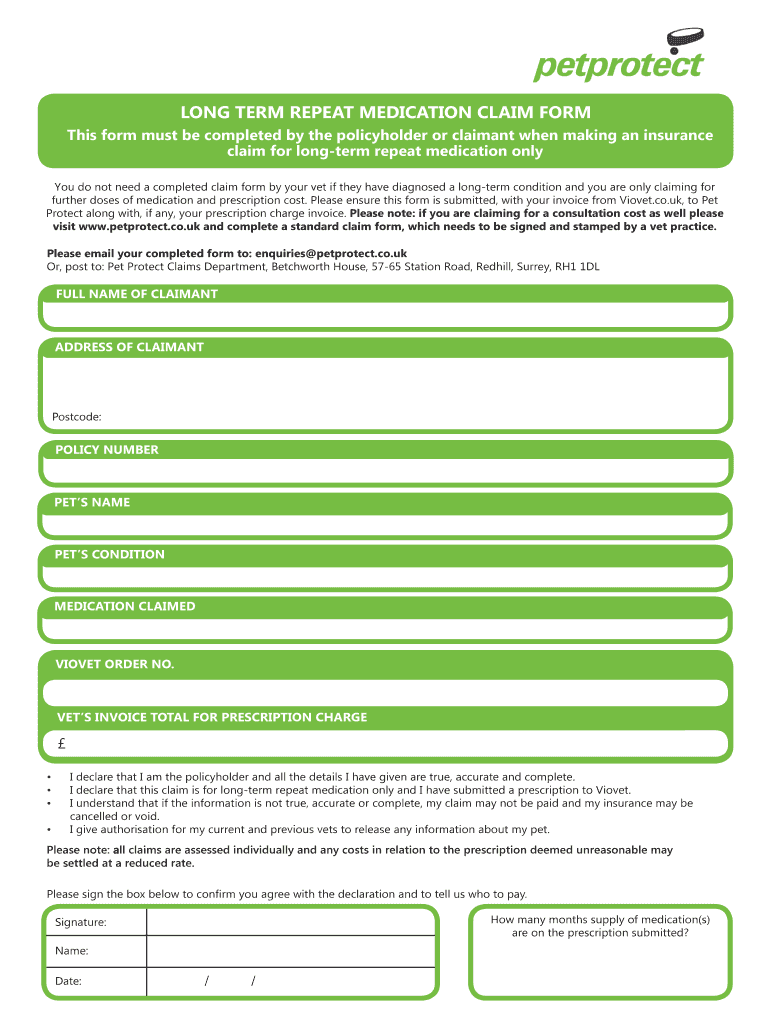 Get the free LONG TERM REPEAT MEDICATION CLAIM FORM - Pet Protect