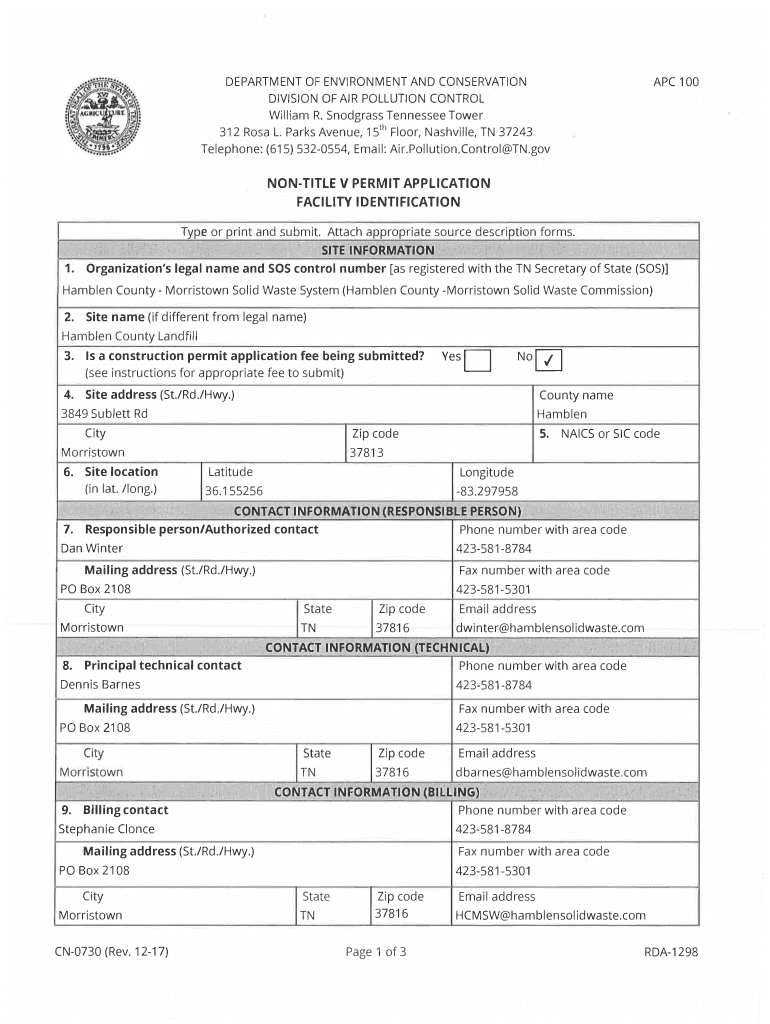 Get the free CN-1513 (Rev. 09-17) RDA-1298 DEPARTMENT OF ... - TDEC - TN.gov