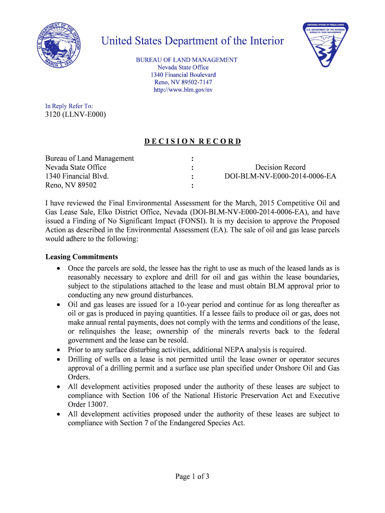 In Reply Refer To:3120 (LLNVE000)