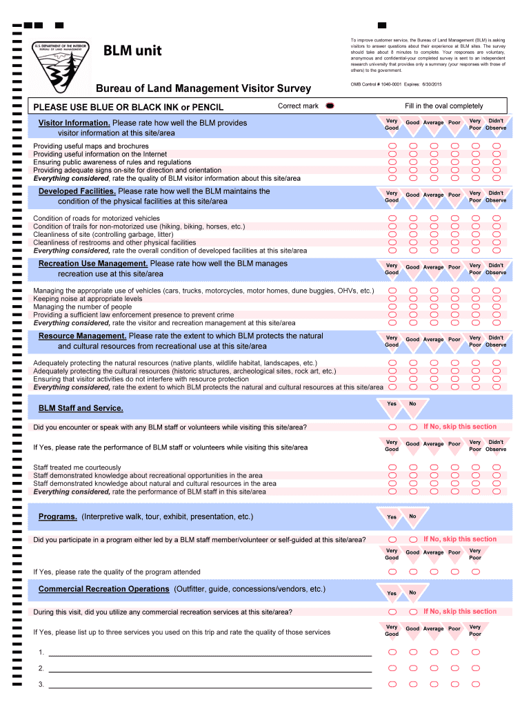 BMT improve customer service, the Bureau of Land Management (BLM) is asking