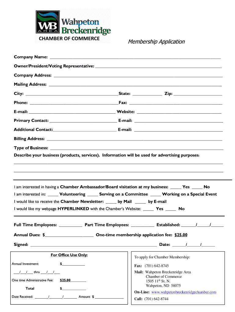 Membership Application Company Name: Owner/President/Voting Representative: Company Address: Mailing Address: City: State: Zip: Phone: Fax: Email: Website: Primary Contact: Email: Additional Contact: