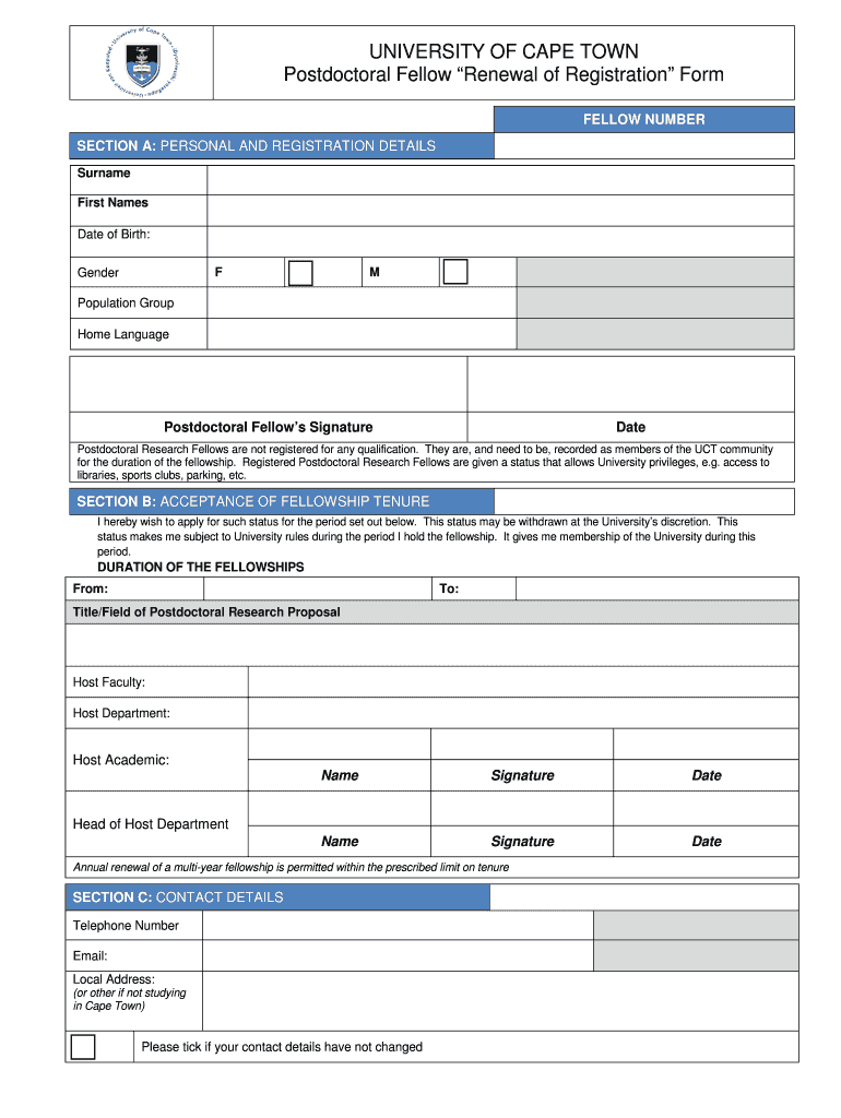 Get the free Postdoctoral Fellow Renewal of Registration Form