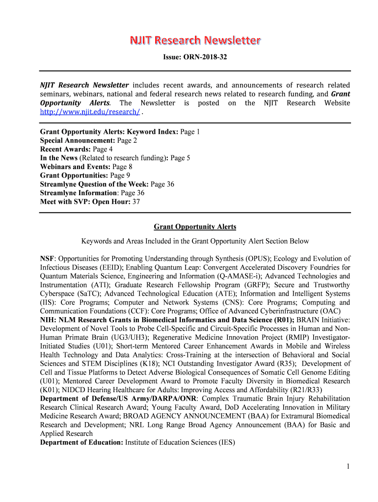 Get the free Research Newsletter Grant Opportunity Alerts- Issue- ORN-2018-32.docx
