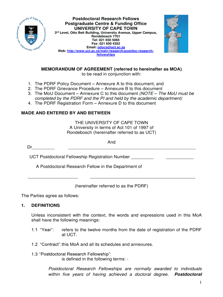 Get the free Postdoctoral Research Fellows at the University of Cape Town.